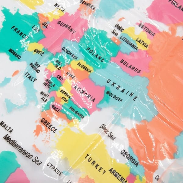 World Map Shower Print Curtain PEVA Vinyl 70″ x 72″ Bed Bath